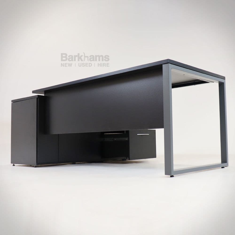 Executive Desk in Black MFC with Storage Return Unit supported by a stylish Black Frame.