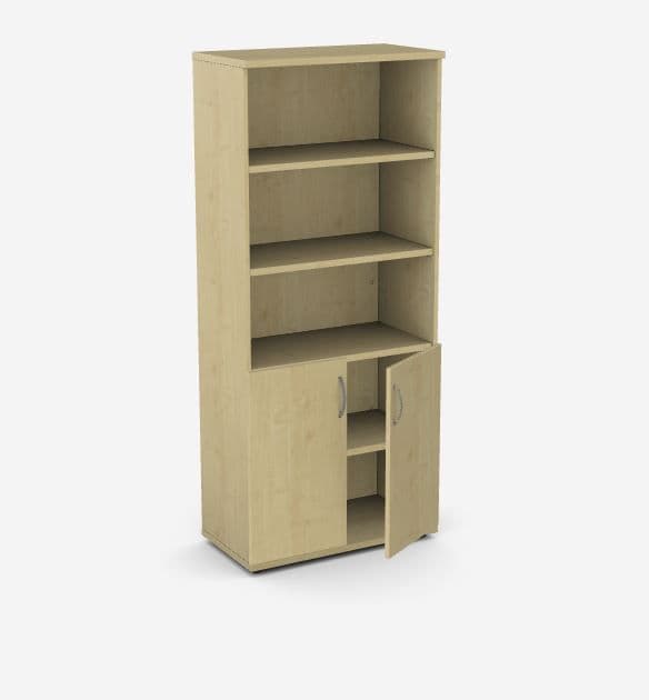 New Studio Open Storage Unit with Cupboard in MFC Finish. Double Doored Storage Cupboard with Bookcase Above, available in a variety of MFC Finishes.