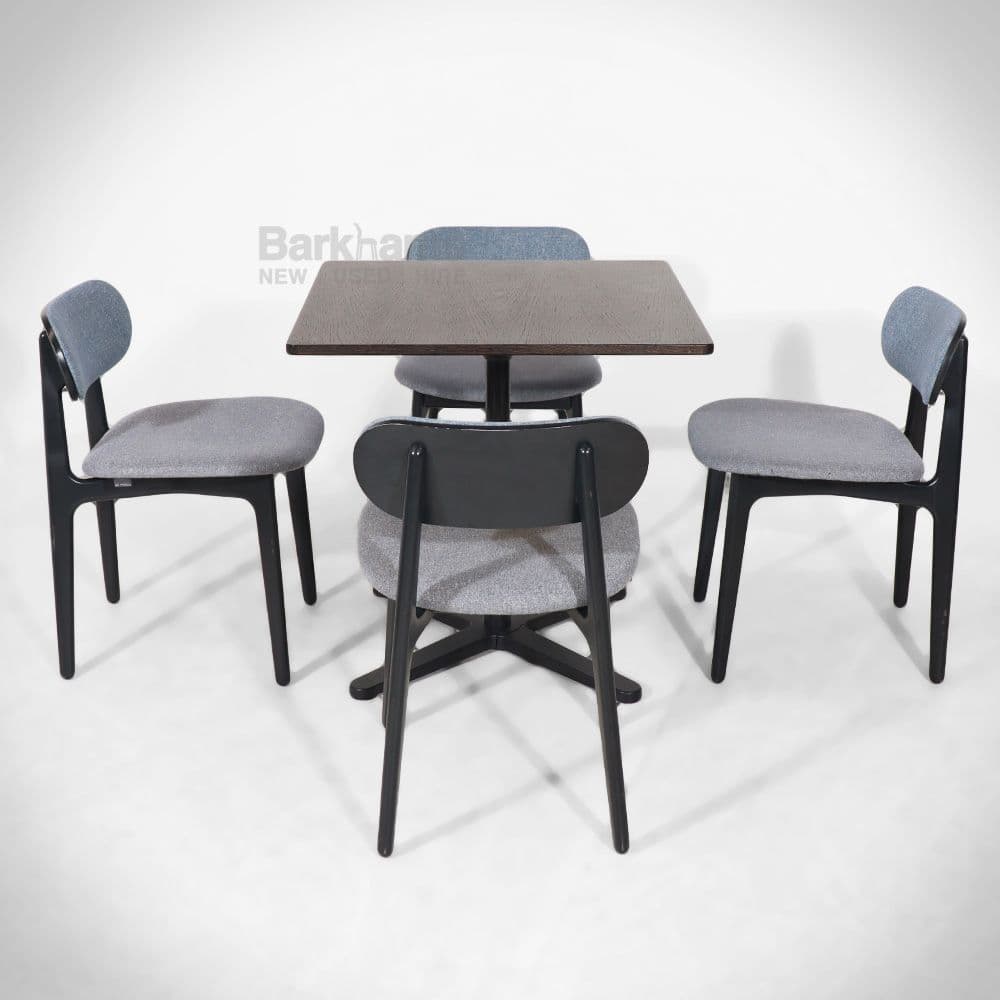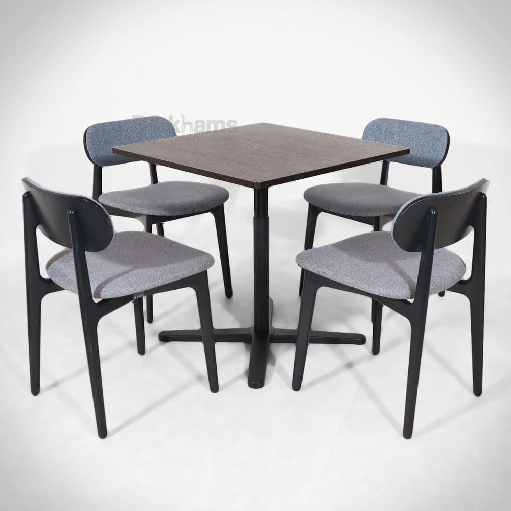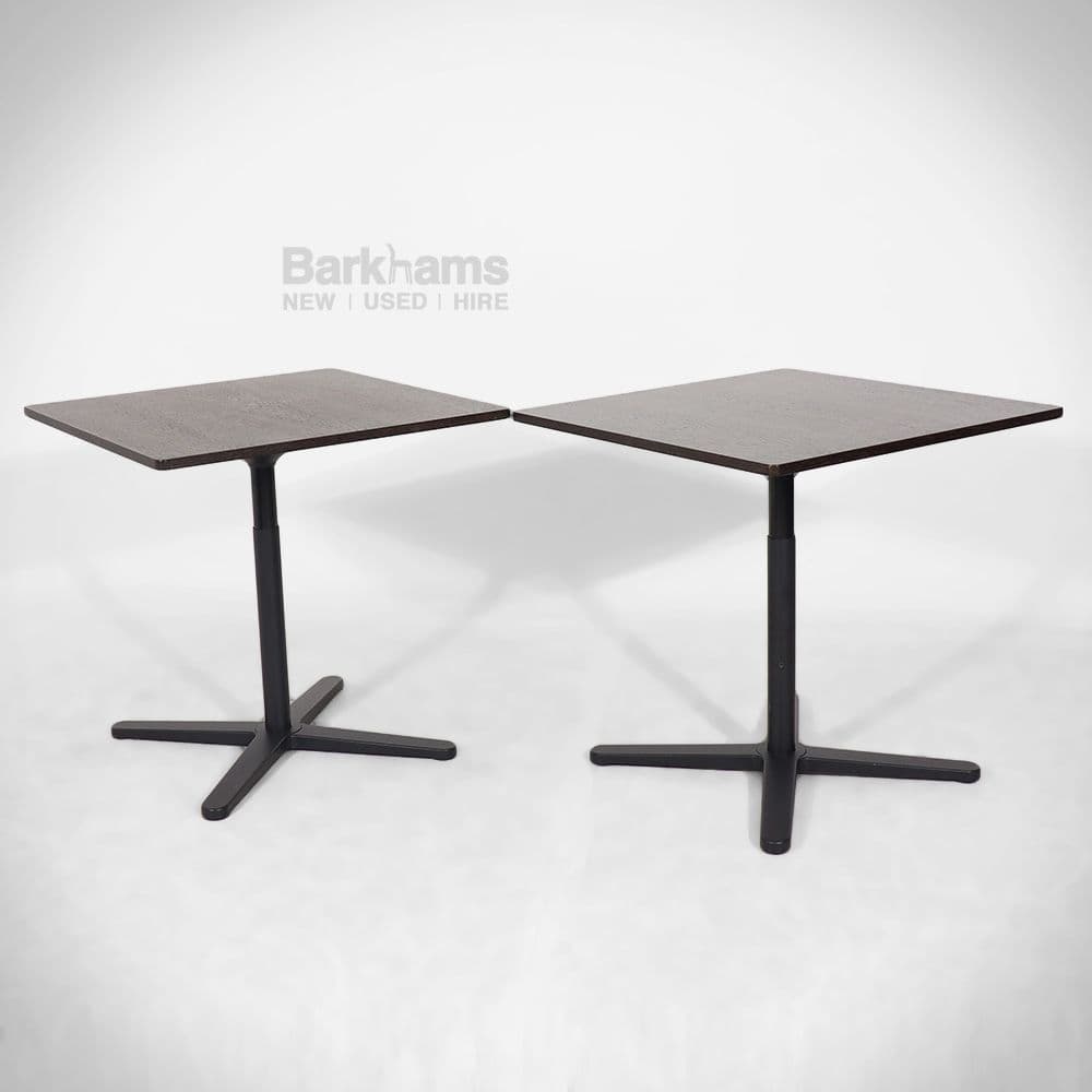 Features a four spoke column base made of die-cast aluminium, which rotates to become vertically aligned when the top is flipped (for storage). Finished with a dark, stain-resistant walnut veneer and black frame.